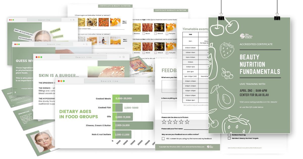 Flagship professional accredited training or workshop series This is your most comprehensive pack and can be used in multiple ways to educate about skin nutrition and functional beauty foods.