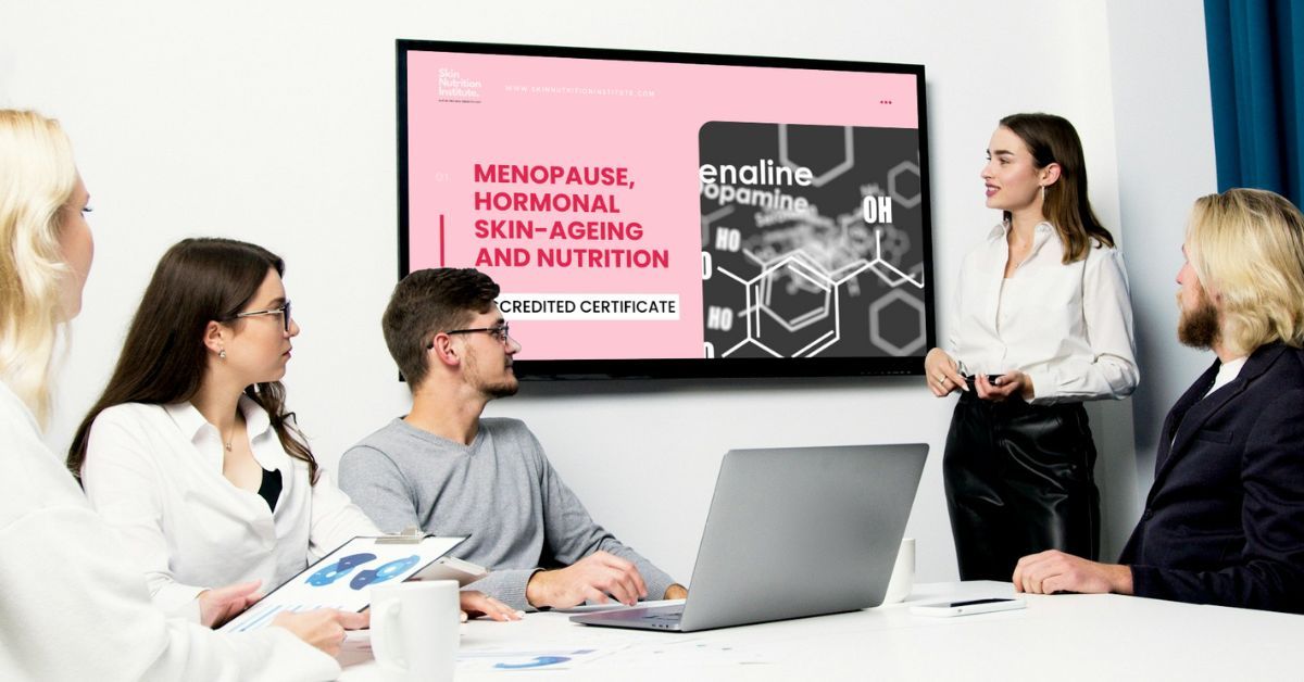 Half-day evidence-based workshop or accredited professional training about the multiple hormones that impact skin-health and skin-ageing; with an entire section on perimenopause skin-health